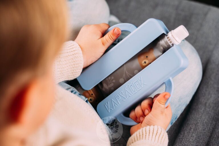 Představujeme vám Kapsáček® – roztomilého a praktického pomocníka, který promění každé krmení v čistou radost! Náš univerzální držáček na dětskou kapsičku zajistí, že veškerý obsah svačinky skončí tam, kde má – v bříšku vašeho miminka. Kapsáček® chrání vaše nejmilejší před ušpiněním a stává se nepostradatelným pomocníkem především na cestách.